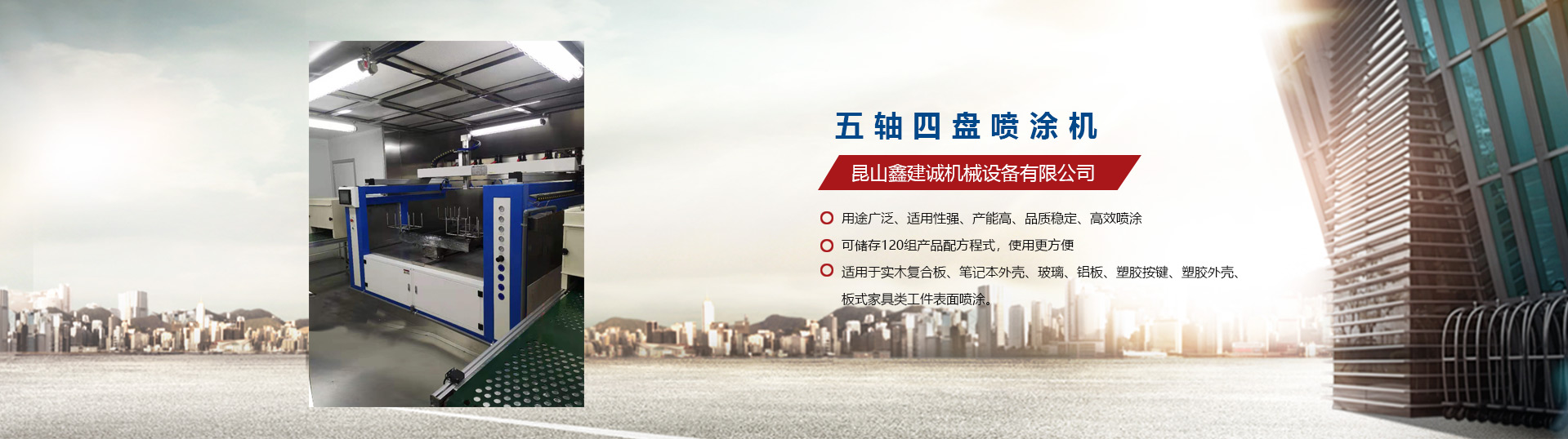 昆山鑫建誠機械設備有限公司自2009年涉足于自動噴漆機設備行業,是一家專業生產噴涂自動化設備的生產廠家,先后推出了平面往復式自動噴漆機:單軸至五軸自動噴漆機、立式往復升降機等。陸續推出了六軸/七軸/八軸/九軸往復機等自動噴漆機專用機械手,應用到具有弧型且表面復雜的產品噴涂,昆山鑫建誠機械設備有限公司推出的往復機廣泛應用于塑膠、五金、木器、裝飾建材、汽車摩托車配件等領域。我們秉承“專業,專注,誠信,互利”的原則,積極引入臺灣技術,充分發揮公司多位高級機械結構工程師、自動化工程師以及自動噴漆機系統工程